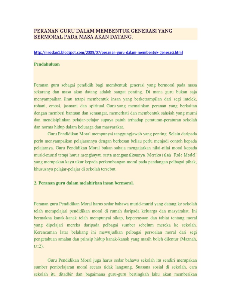 Peranan Guru Dalam Membentuk Generasi Yang Bermoral Pada Masa Akan Datang