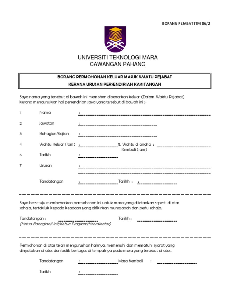Borang Keluar Pejabat Atas Urusan Peribadi