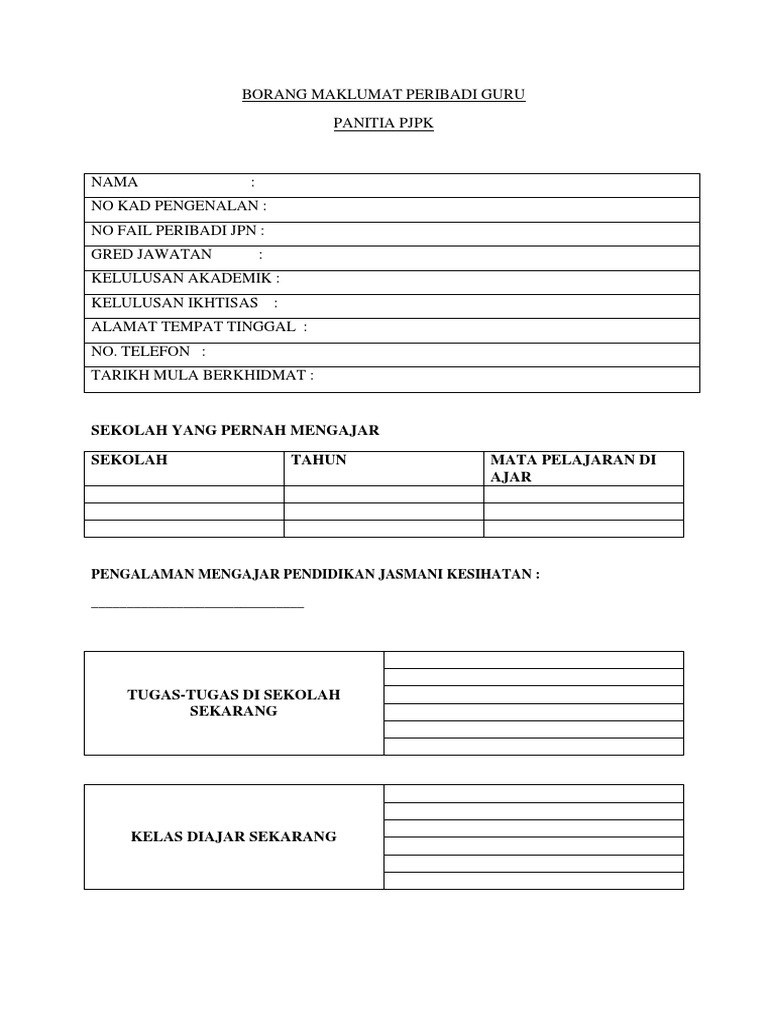 Sekolah yang pernah mengajar tugas-tugas di sekolah. Fail Bank Soalan 8. Simpan Simpan Borang Maklumat Diri Guru Panitia Untuk Nanti.