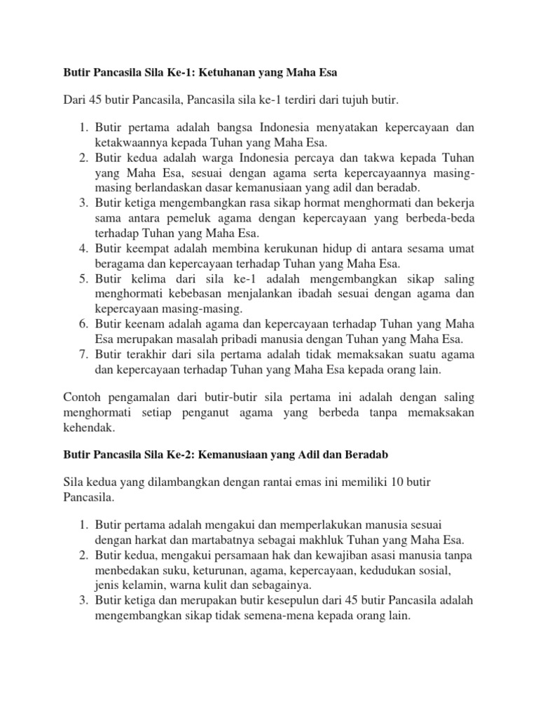 Pancasila Bunyi Arti Contoh Butir Pengamalan Nilai Pancasila
