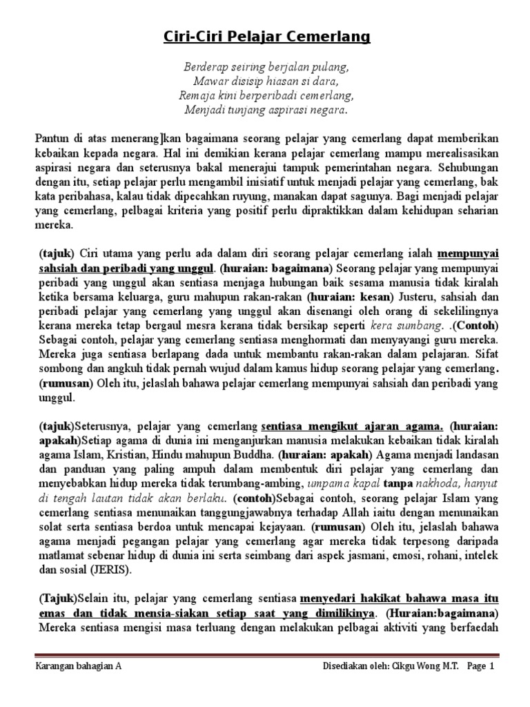 Doc Karangan Bahasa Melayu Pmr Ciri Ciri Murid Cemerlang Ciri Ciri Murid Cemerlang Lai Heng Academia Edu