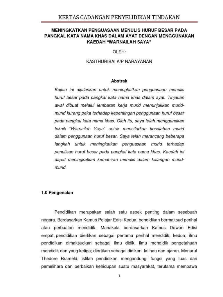 Meningkatkan Penguasaan Menulis Huruf Besar Pada Pangkal Kata Nama Khas Dalam Kalangan Murid