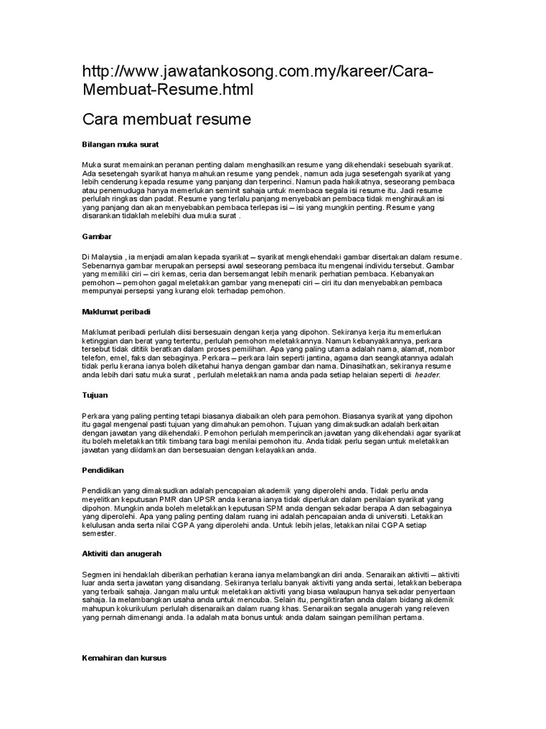 Contoh Resume In Bahasa Melayu